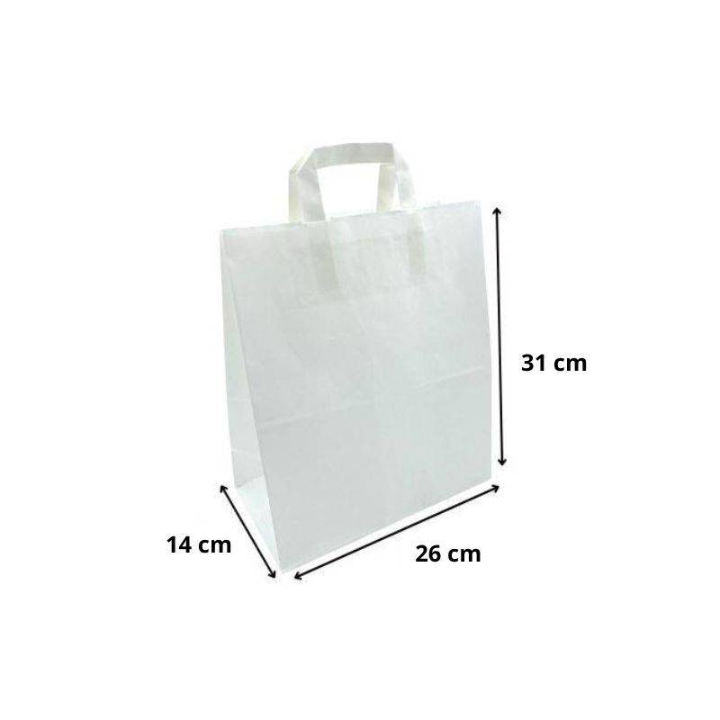 Le sac cabas kraft blanchi avec poignées plates est un emballage de transport destiné à la vente-à-emporter. Particulièrement apprécié par les traiteurs professionnels, ce sac conditionne de délicieuses préparations alimentaires avec leur emballage. Robuste et pratique, ce sac cabas blanc assure un transport facile de la marchandise avec ses deux poignées plates. Look épuré et classique, cet emballage kraft blanc peut parfaitement être réutilisé comme "sac shopping" grâce à sa grande polyvalence. En effet, ce sac cabas peut transporter des produits alimentaires sous emballage mais aussi des produits boutique.